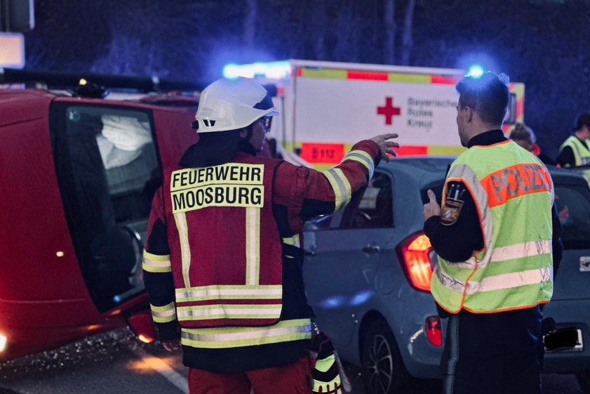 Laut Polizei ist folgendes passiert: Eine 21 Jahre alte Pkw-Lenkerin aus dem Kreis Freising befuhr mit ihrem Audi die genannte Staatsstraße – von Moosburg her kommend – in Richtung Mauern und wollte dann nach links auf die Kreisstraße FS28 abbiegen. Dabei übersah sie den ihr entgegenkommenden 60-Jährigen aus dem Landkreis Freising, der einen Kleintransporter steuerte. Daraufhin sei es zunächst zum Zusammenstoß dieser beiden Wagen gekommen. Der Pkw der jungen Frau sei dadurch gegen einen Kia geschleudert worden, der von einem 50-Jährigen aus dem Kreis Freising gesteuert wurde.