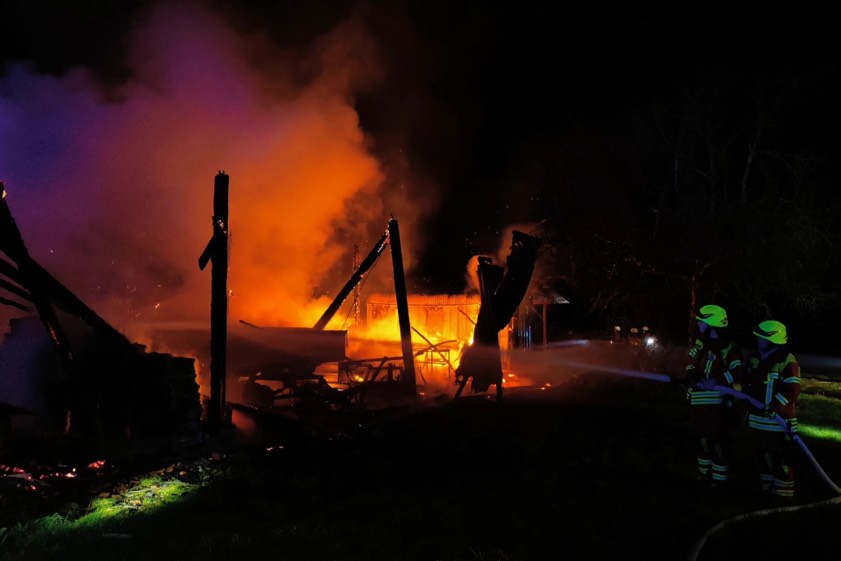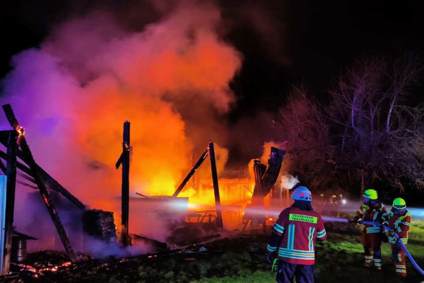 Großeinsatz für die Feuerwehr in der Nacht zum Samstag beim Ortsteil Tegernbach. Gebäude samt Inhalt wurde Raub der Flammen.