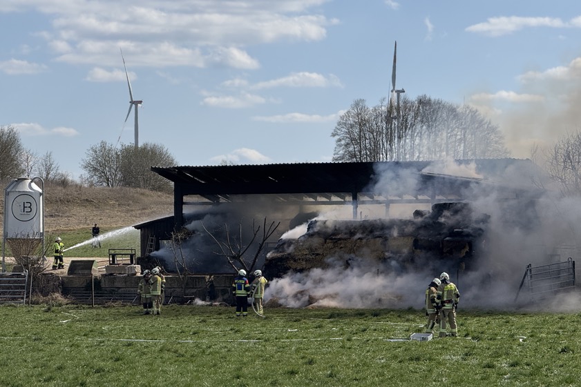 Laut Polizei war der Brand der Stallung gegen 14.20 Uhr entdeckt worden. Trotz des schnellen Einsatzes der alarmierten Feuerwehrleute seien nach derzeit vorliegenden Informationen 14 Mastbullen in dem Gebäude verendet. Vier Personen seien wegen des Verdachts auf eine Rauchgas-Intoxikation vor Ort medizinisch versorgt worden. "Die Löscharbeiten dauern zur Stunde weiter an", hieß es gegen 16.20 Uhr von der Polizei. Die Ermittlungen zur Brand-Ursache seien bereits von der Kripo übernommen worden. Für den morgigen Mittwoch sei diesbezüglich eine Begehung des Brandorts geplant.