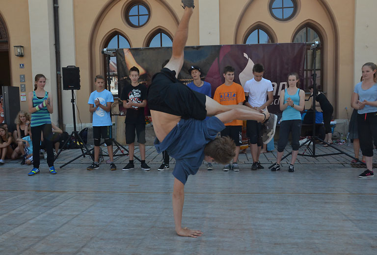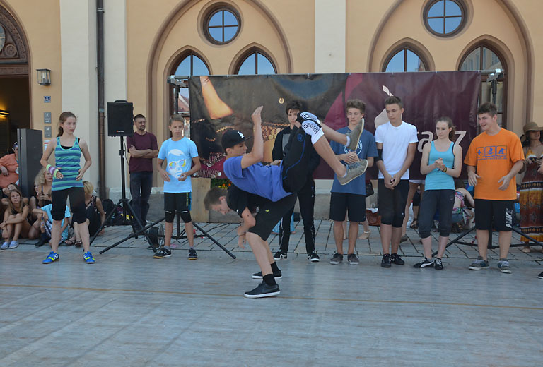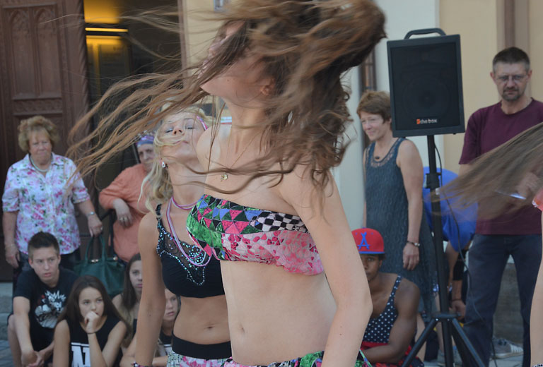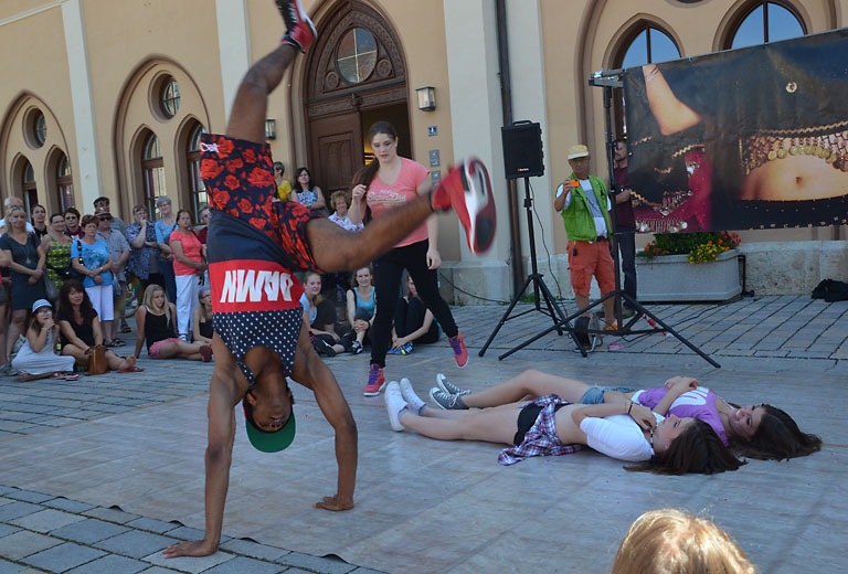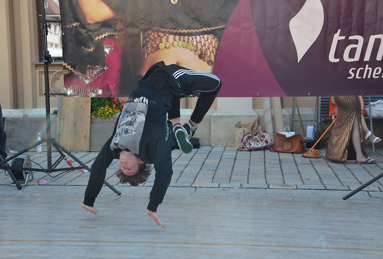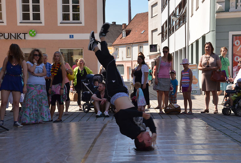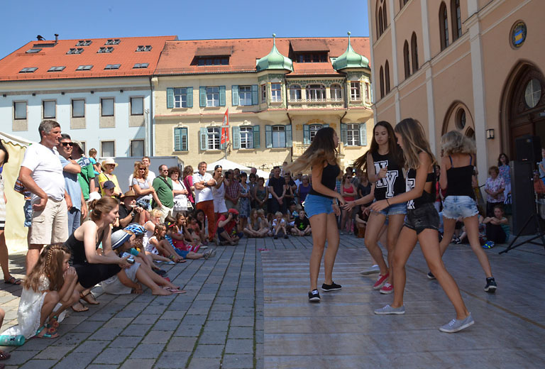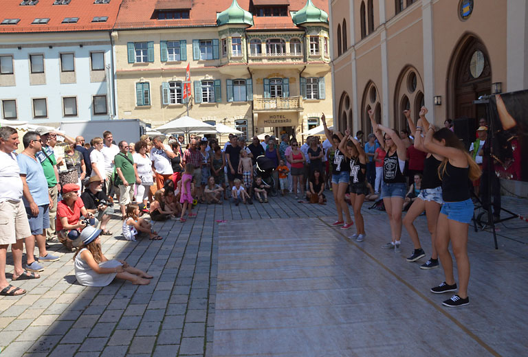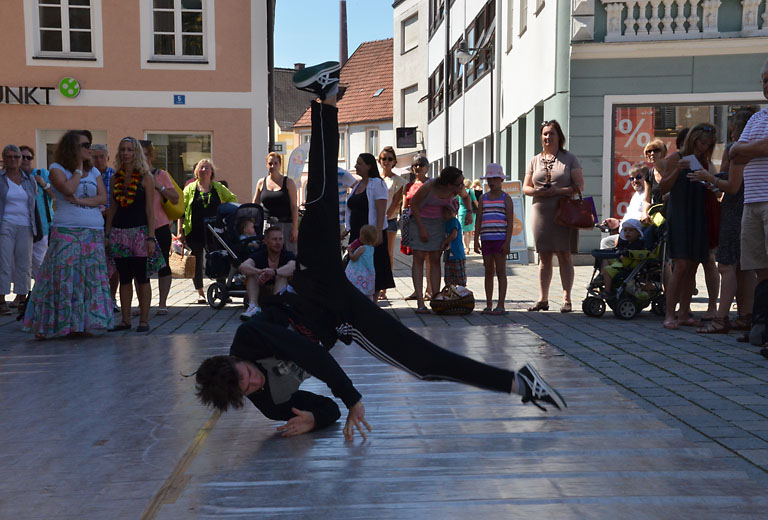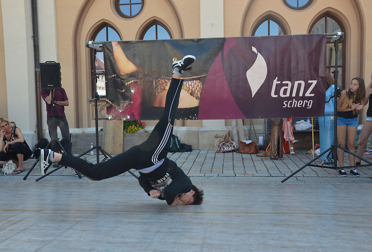 (ty) Die Pfaffenhofener Veranstaltungsreihe „Sommer in der Stadt“ bietet jeden Samstagvormittag gute Unterhaltung am Rande des Wochenmarkts. So auch heute wieder. Diesmal gab es viel Musik und Tanz. Das hiesige Tanzstudio Scherg bot ein abwechslungsreiches Programm. Unter dem Motto „Tanz in den Sommer“ gab es verschiedenste Aufführungen – von Stepp-Tanz, Jazztanz und Bauchtanz bis hin zu Hip-Hop, Breakdance und Samba, oder sogar einer Kombination.