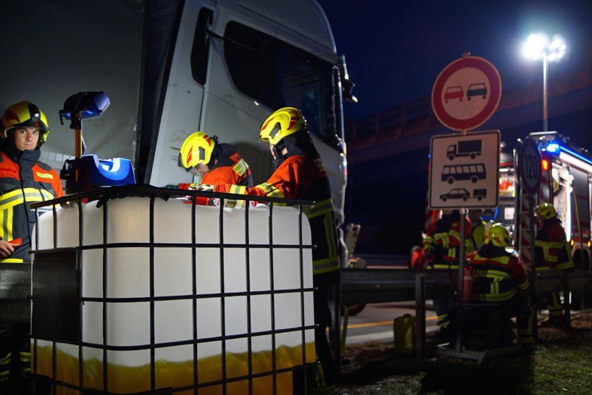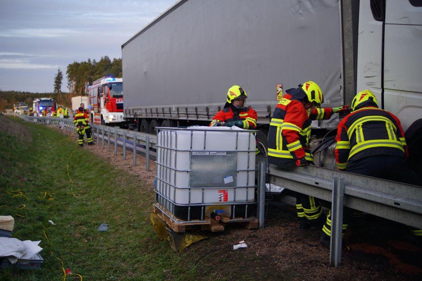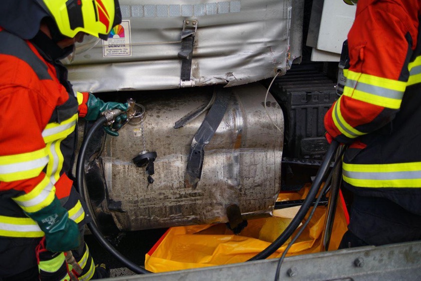Der an den Lkw-Gespannen entstandene Schaden wurde auf 20.000 Euro geschätzt. Weil rund 200 Liter Diesel ausliefen, musste Erdreich abgetragen werden.