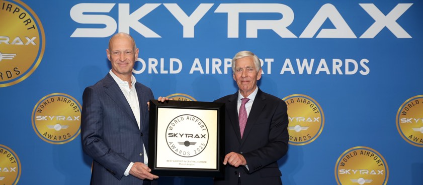 Die "World Airport Awards" gelten als eine der wichtigsten Auszeichnungen in der Luftfahrt-Branche. Sie sind das Ergebnis einer Befragung von Passagieren aus mehr als 100 Ländern, die von August vergangenen Jahres bis Februar dieses Jahres durchgeführt wurde. Das Foto zeigt den Münchner Flughafen-Chef Jost Lammers (links) und "Skytrax"-Chef Edward Plaisted mit dem "Skytrax Award 2025". (Foto: Skytrax)
