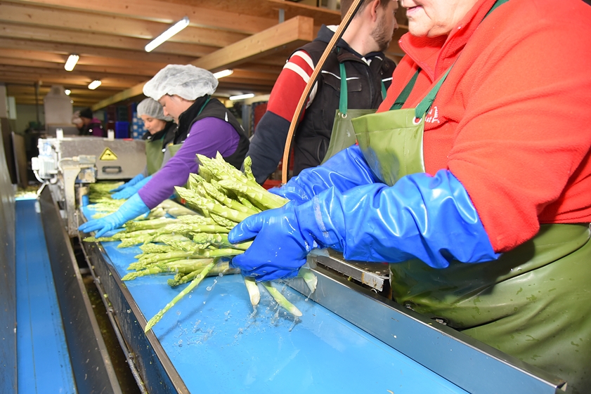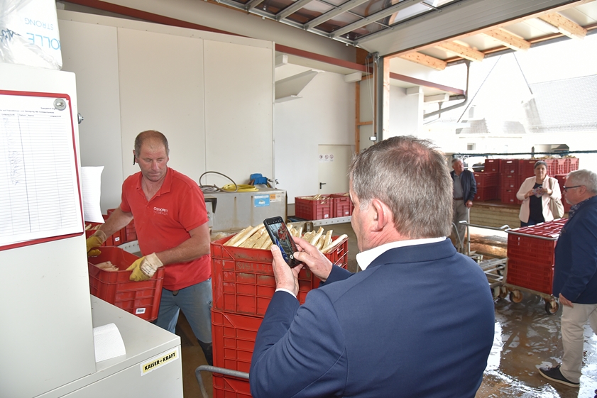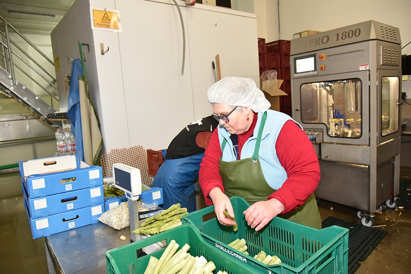 Auf einer stattlichen Fläche von rund 100 Hektar baut Andreas Sigllechner vom gleichnamigen Spargelhof in der dritten Generationen das königliche Gemüse an. "Aktuell ernten wir rund zehn bis 14 Tonnen täglich, die Nachfrage – insbesondere jetzt vor Ostern – ist enorm", berichtete er. Großen Wert lege er auf die Zufriedenheit der rund 110 Saison-Arbeitskräfte, ohne deren Unterstützung der Betrieb nicht laufen würde. Beliefert werden – neben dem eigenen Hofladen – unter anderem der Einzelhandel sowie diverse Wochenmärkte bayernweit. Übrigens sei "Grüner Spargel im Aufwind", erklärte Sigllechner – dieser sei vor allem von jungen Kunden zunehmend gefragt.