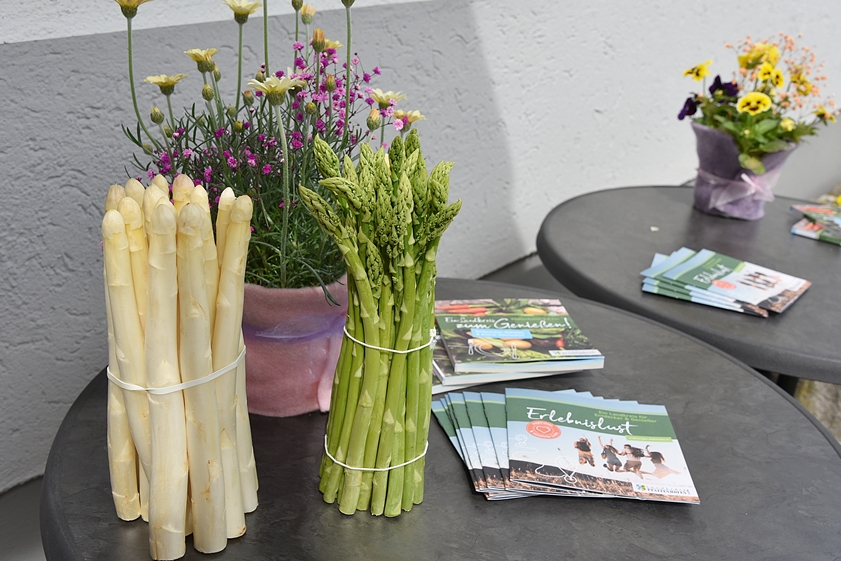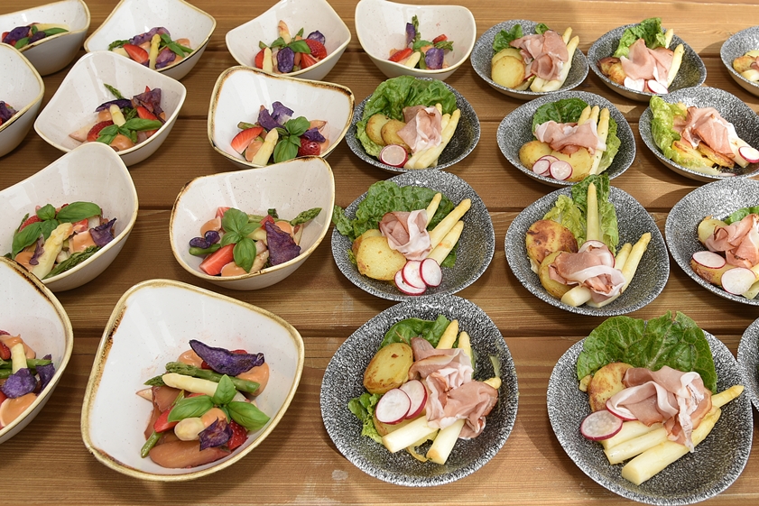 Nach der Besichtigung der "Spargel-Waschstraße" sowie der Sortierung und Verpackung verwöhnte Schwarzbauer vom "Metzgerbräu" die Gäste mit kleinen Schmankerln – von der Neuinterpretation des Klassikers "Spargel mit Schinken" über einen fruchtigen Spargel-Salat mit Rhabarber und Erdbeeren bis hin zu "Lachs an Spargel". Offiziell und traditionell bis zum Johanni-Tag am 24. Juni bieten zahlreiche regionale Erzeuger auch im Kreis Pfaffenhofen nun frischen Spargel an. Gastronomie-Betriebe locken mit verschiedensten Spargel-Gerichten.