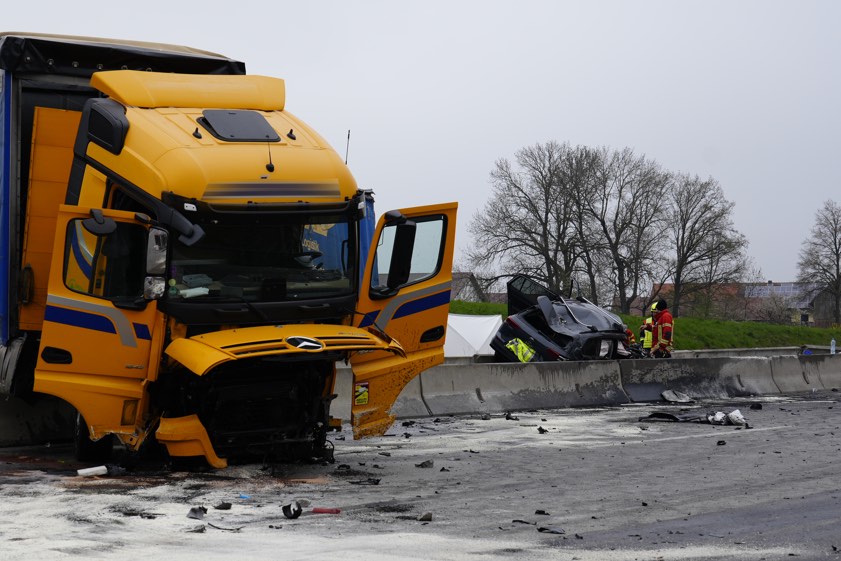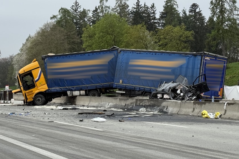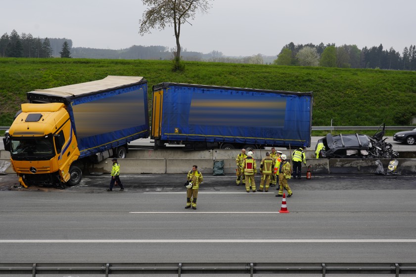 Lkw-Fahrer (65) wurde vorläufig festgenommen; nach jüngstem Stand war nicht ein medizinisches Problem die Unfall-Ursache. Pkw-Lenker (30) starb noch vor Ort. Autobahn stundenlang in beide Richtungen voll gesperrt.