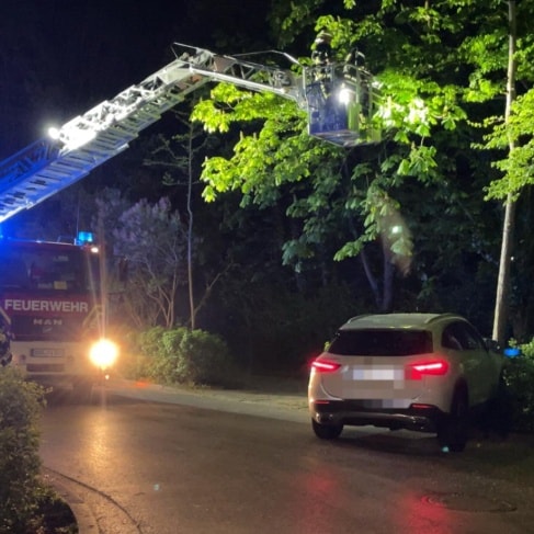 Der demolierte Pkw musste abgeschleppt werden. Wie die örtliche Feuerwehr berichtet, war der gerammte Baum durch die Kollision – in zirka vier Metern Höhe – abgebrochen und hatte sich in einer benachbarten Baumkrone verkeilt. "Da nicht ausgeschlossen werden konnte, dass Teile davon auf den Gehweg stürzen, musste der abgebrochene Teil entfernt werden", erklären die Floriansjünger. Mit Hilfe der Drehleiter wurden die erforderlichen Arbeiten durchgeführt. Nach rund einer Stunde konnten die Feuerwehrler wieder abrücken.