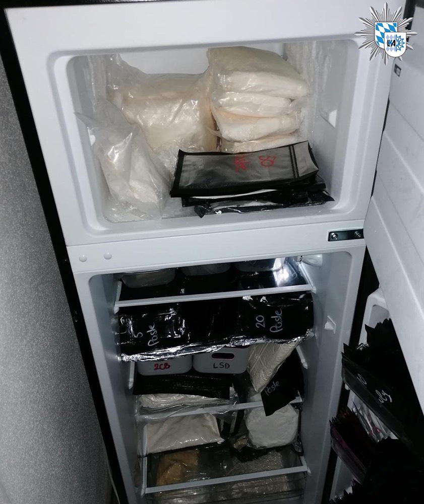 "Besonders auffällig war die professionelle Lagerung und Verwaltung der Substanzen", erklärt das bayerische Landeskriminalamt: Die Drogen lagen demnach in Teilen bereits vorportioniert in rund 7000 vakuum-verschweißten Tütchen bereit. Der geschätzte Verkaufswert der beschlagnahmten Betäubungsmittel liege im unteren siebenstelligen Euro-Bereich, so die Ermittlungs-Behörden.