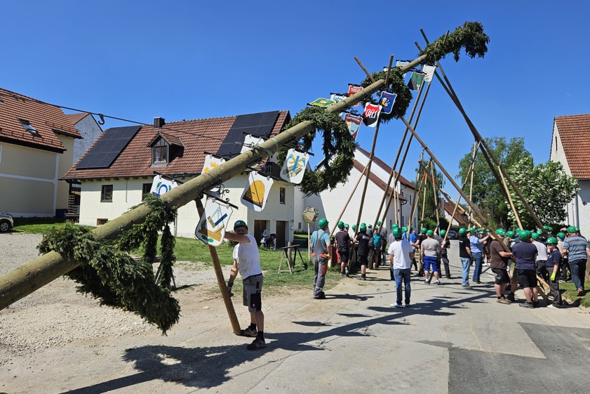 (ty) Seit 1953, zuvor hatte es eine fünfjährige Pause gegeben, wird im Pfaffenhofener Ortsteil Uttenhofen regelmäßig ein neuer Maibaum aufgestellt – zunächst vor der früheren Metzgerei Schrätzenstaller (gegenüber dem Gasthaus Neumeir, "Alter Wirt"), seit 1970 an der Schmädelstraße auf Höhe des Anwesens Niedermeier (beim "Woifebauern"). Heuer hatte die Familie Krammer ("Huberbauer") den 27-Meter-Stamm gestiftet, der nun festlich dekoriert in die Vertikale gehievt wurde. Traditionell wird der Maibaum in diesem Ort mit reiner Muskelkraft aufgestellt und in einem Erdloch eingegraben.