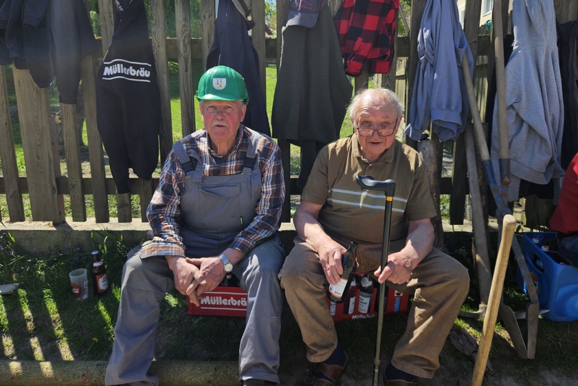 Schon genügend Maibäume in Uttenhofen aufgestellt und daher eine Pause redlich verdient haben der frühere Maibaum-Chef Wolfgang Weber (links) und Benno Maier.