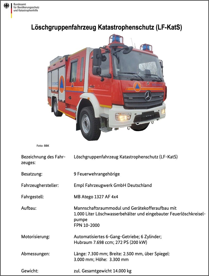 Zum Hintergrund wurde aus seinem Büro heute erklärt: Mit der Ergänzung des Katastrophen-Schutzes der Länder mit Fahrzeugen, Ausstattung und Gerät in den Aufgaben-Bereichen Brandschutz, ABC-Schutz, Sanitätswesen und Betreuung erfülle der Bund seine gesetzliche Aufgabe nach Paragraf 13 des Zivilschutz- und Katastrophenhilfe-Gesetzes (ZSKG). Der Bund ergänze danach die vom Land und den kommunalen Ebenen bereitgestellten Fahrzeuge um solche, die im Verteidigungsfall zusätzlich notwendig seien. Art und Umfang der Ergänzung seien in einem zwischen Bund und Ländern abgestimmten Ausstattungs-Konzept festgelegt.