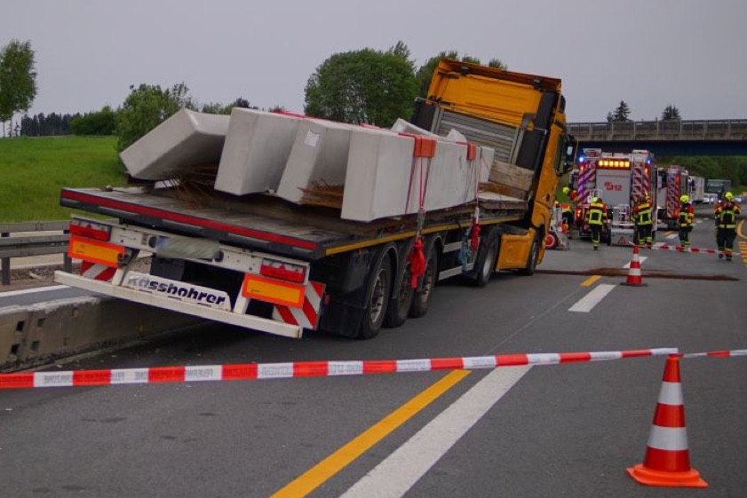 Verletzt worden sei bei dem Unfall-Geschehen niemand, teilte die zuständige Polizeiinspektion aus Mainburg mit. Der entstandene Sachschaden wurde von Streifenbeamten auf insgesamt 34 500 Euro geschätzt. Wegen der aufwändigen Bergungs-Maßnahmen habe die A93 auf Höhe der Anschlussstelle Saalhaupt in beide Richtungen für mehrere Stunden voll gesperrt werden müssen. Deshalb sei der Verkehr von der Autobahn abgeleitet worden. Das habe für ein erhebliches Verkehrs-Aufkommen auf den Nebenstrecken gesorgt. Wie die Feuerwehr aus Bad Abbach berichtet, wurde die Beton-Gleitwand auf einer Länge von rund 100 Metern massiv demoliert