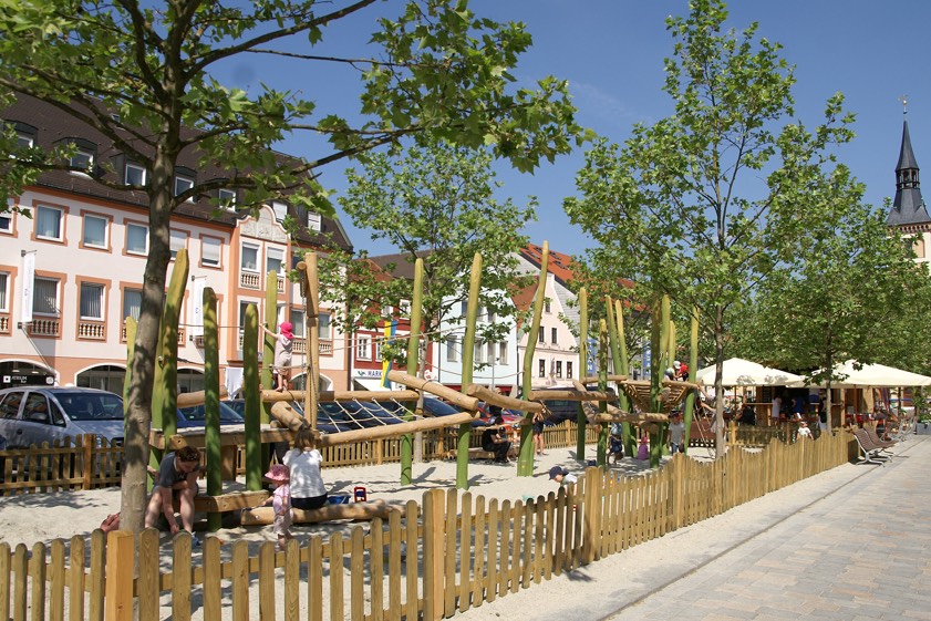 Auf dem Hauptplatz und in der Frauenstraße finden Baumpflege-Maßnahmen statt. Auch der Kinderspielplatz ist zeitweise gesperrt.