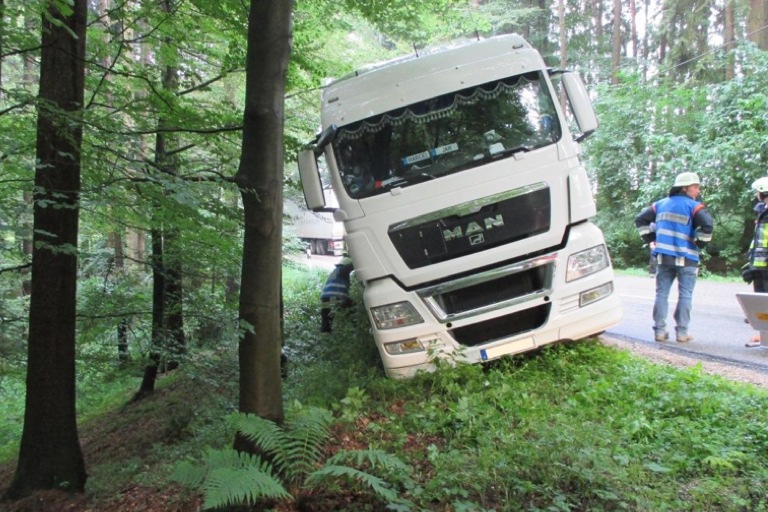 Zwischen 18 und 19 Uhr wurde noch ein Lkw-Unfall gemeldet; auch hier wurden die Floriansjünger gebraucht. Ein Sattelzug musste einem entgegenkommenden Lkw ausweichen, um einen Crash zu vermeiden – und bei diesem Ausweichmanöver fuhr er auf einen Baumstumpf, wurde beschädigt und musste von einem Abschleppunternehmen geborgen werden. Beim Eintreffen der Wolnzacher Feuerwehrler wurde die Unfallstelle sofort gesichert und nachdem der Tank des Lasters abgepumpt war, konnte ein Abschleppunternehmen mit der aufwendigen Bergung beginnen. Die Kreisstraße zwischen Wolnzach und Rudertshausen war während der Arbeiten in diesem Abschnitt für etwa drei Stunden komplett gesperrt.