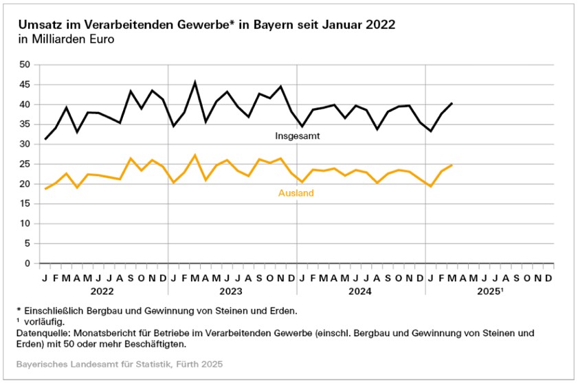 (ty) Das verarbeitende Gewerbe im Freistaat hat im ersten Quartal dieses Jahres gegenüber dem Vorjahres-Zeitraum einen Umsatz-Rückgang von 0,8 Prozent auf rund 111,4 Milliarden Euro verzeichnet. Das verarbeitende Gewerbe, bezogen auf Betriebe mit 50 oder mehr Beschäftigten, umfasst dabei auch immer den Bergbau sowie die Gewinnung von Steinen und Erden. Die Nachfrage stieg im ersten Quartal heuer gegenüber dem Vorjahres-Quartal preisbereinigt um 4,9 Prozent an; dabei erhöhten sich die Bestell-Eingänge aus dem Inland um 1,0 Prozent und die aus dem Ausland kletterten um 7,3 Prozent.