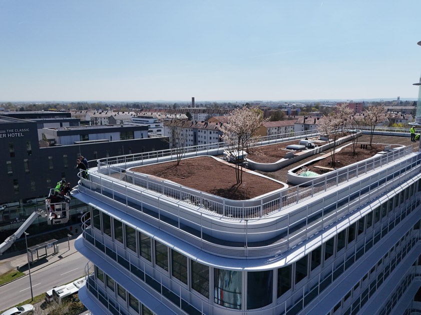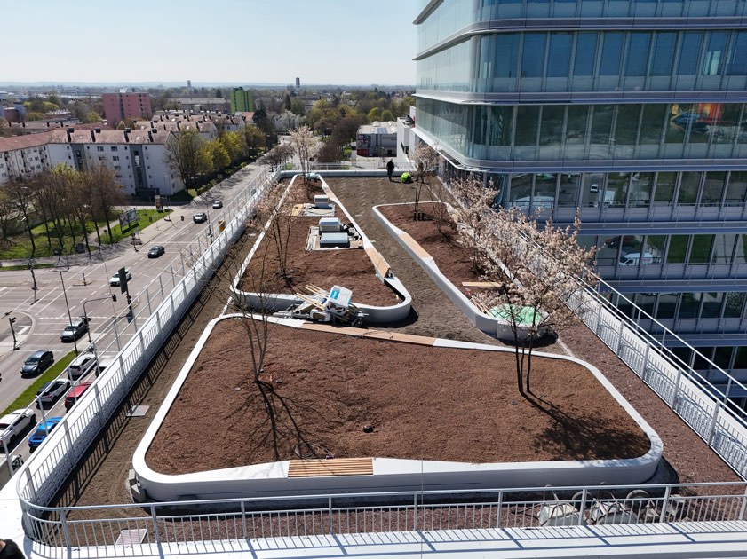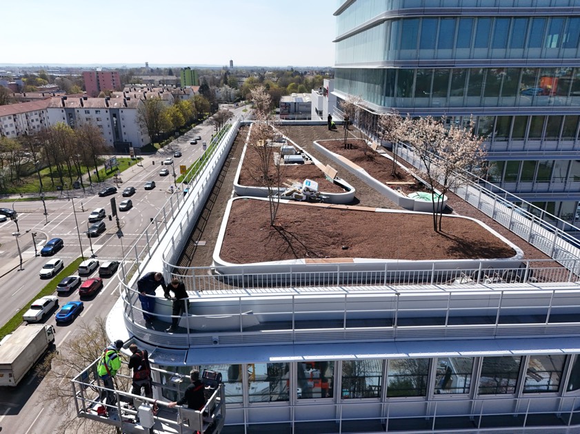 Als Arbeitsräume und Arbeitsplatz-Möglichkeiten stehen auf den etwa 6500 Quadratmetern, die im Donau-Tower von der Volksbank-Raiffeisenbank Bayern-Mitte selbst belegt werden, nun auch Telefon-Boxen, Fokus-Räume, Kreativ-Räume und obendrauf ein Eltern-Kind-Büro zur Verfügung. Insgesamt bietet der Gebäude-Komplex übrigens rund 13 000 Quadratmeter.