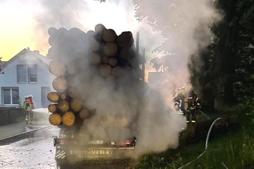 (ty) Ein ungeplantes Ende hat am heutigen Morgen gegen 4.50 Uhr eine Lkw-Tour im Gemeinde-Bereich von Pöttmes im Landkreis Aichach Friedberg gefunden. Laut Polizei war der Lastwagen-Fahrer mit seinem Gespann auf der Staatsstraße zwischen Kühnhausen und Baar unterwegs, als er im Ortsbereich von Wiesenbach bemerkte, dass ein Reifen des mit Baumstämmen beladenen Anhängers in Brand geraten war. Der Mann habe sein Gespann gestoppt und die Floriansjünger alarmiert.