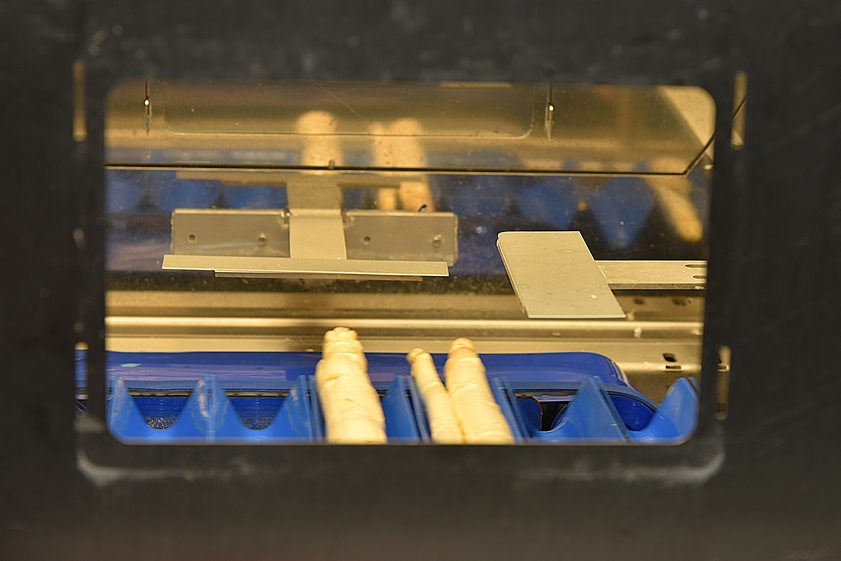 Die Kultur-Folie hat für die Spargelbauern einen weiteren entscheidenden Nutzen. Landwirt Schiebel erklärt ihn so: Die Folie hält UV-Strahlen ab und erleichtert damit die Ernte. Denn sobald die wachsenden Stangen aus der Erde kommen und das Tageslicht sehen, verfärben sie sich. Was beim weißen Spargel eine Qualitäts-Minderung bedeutet. Denn als hochklassig gilt ein Spargel nach den Vorgaben des Marktes nur, wenn er nicht nur dick und gerade gewachsen ist, sondern auch eine schöne weiße Spitze hat.
