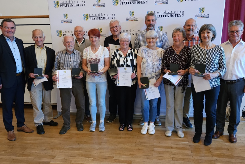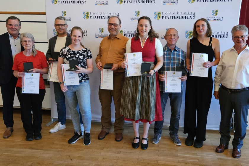(ty) Insgesamt 85 Sportlerinnen und Sportler aus dem Kreis Pfaffenhofen, die im vergangenen Jahr bemerkenswerte Leistungen erbracht haben, sind am Dienstagabend im Rahmen der traditionellen Sportler-Ehrung des Landkreises von Landrat Albert Gürtner (FW) und Florian Weiß, dem Vorsitzenden der Sport-Kommission des Landkreises, ausgezeichnet worden. Die Geehrten sind in verschiedensten Sportarten und Disziplinen aktiv. Der diesjährige Sportpreis des Landrats ging an den Schützen Wilfried Riedel aus Baar-Ebenhausen. Nachfolgend die Namen aller Geehrten und ihre errungen Leistungen sowie die jeweiligen Ehrungs-Fotos.