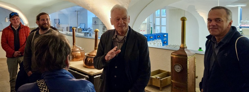 Ein Spaziergang über den Tittinger Kreuzweg, der anno 1886 errichtet worden war, führte die Ausflügler dann zur Brauerei Gutmann in Titting. Senior-Chef Fritz Gutmann (Foto) führte die Gäste dort durch die Produktion, die sich immer noch im knapp 500 Jahre alten Wasserschloss befindet. Er verknüpfte die Historie des Standorts mit der inzwischen über 300-jährigen Brauerei-Tradition. 1855 hatte die Familie Gutmann das Anwesen ersteigert, seit 1913 spezialisierte man sich mehr und mehr auf Weißbier. Im Metzgerei-Gasthof "Zur Post" in Titting ließ sich die Gruppe aus Scheyern schließlich ein gemeinsames Essen mit Gutmann-Bieren schmecken.