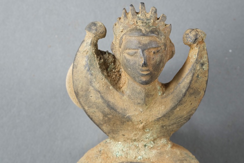 Griff einer römischen Öllampe mit Büste des Sonnengottes Sol.