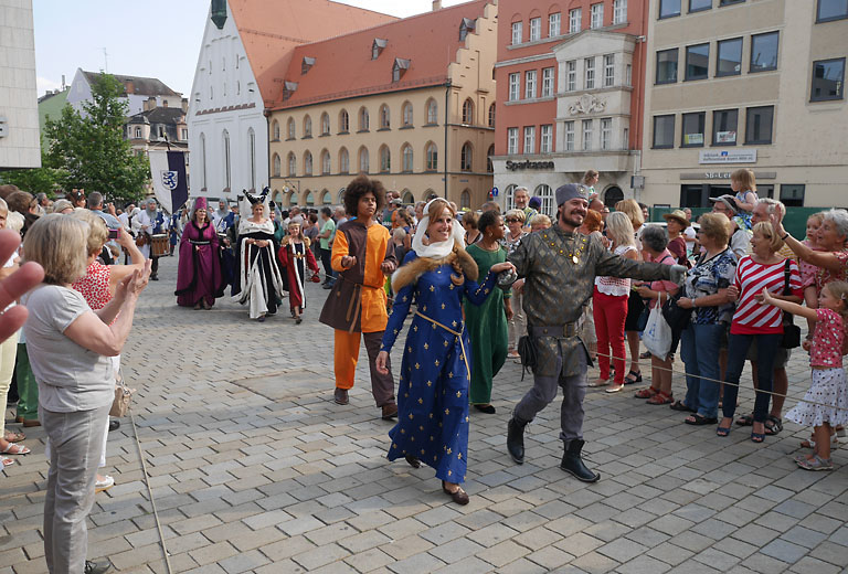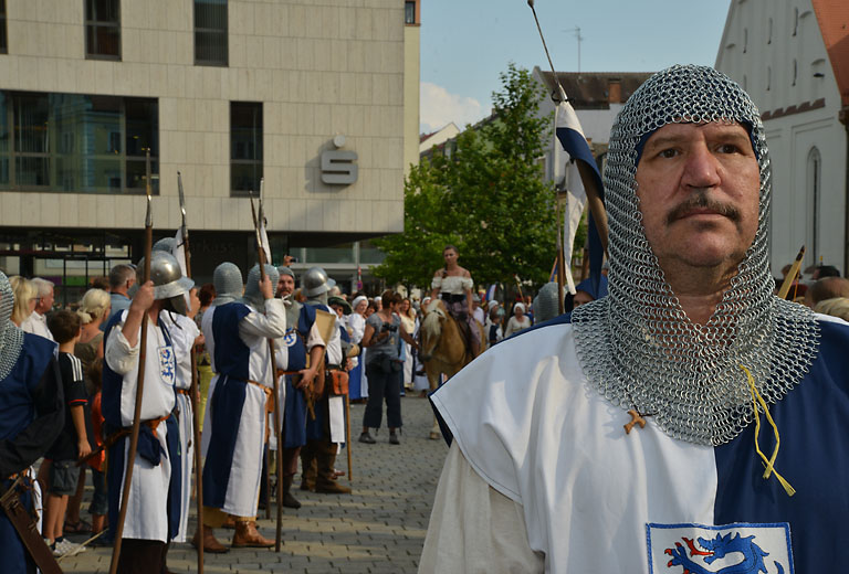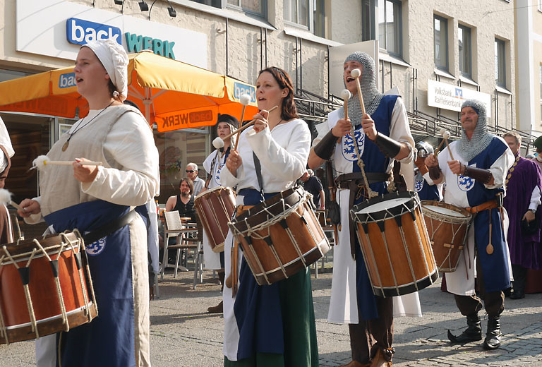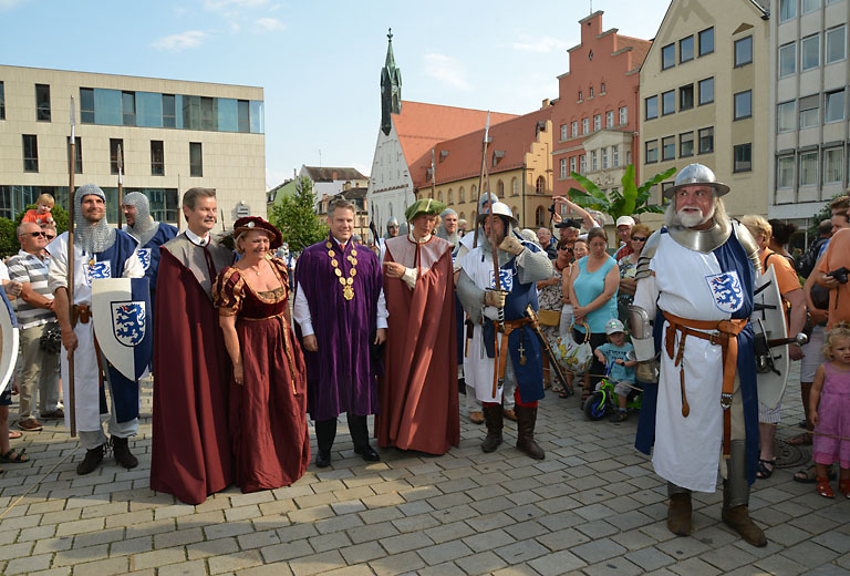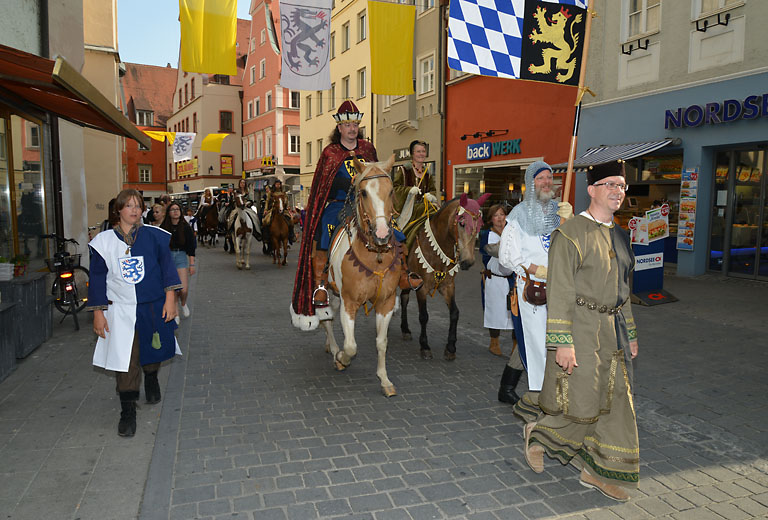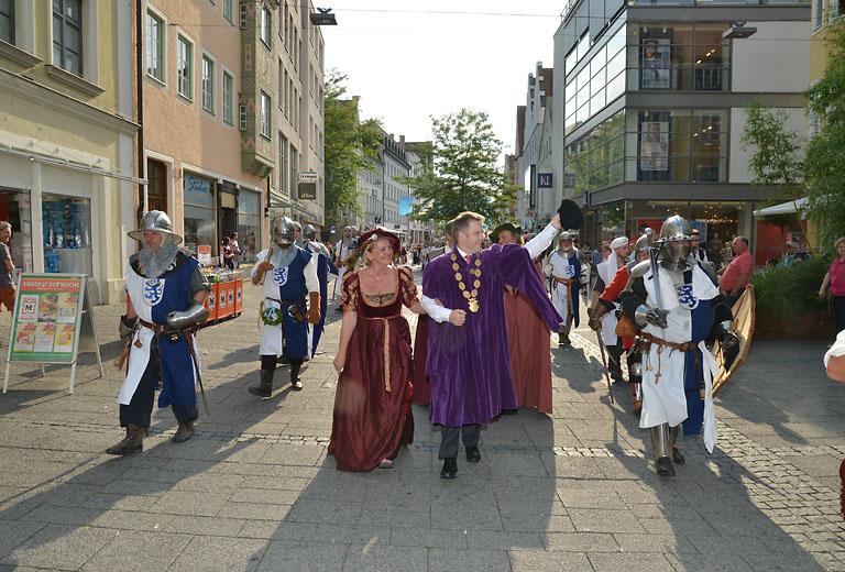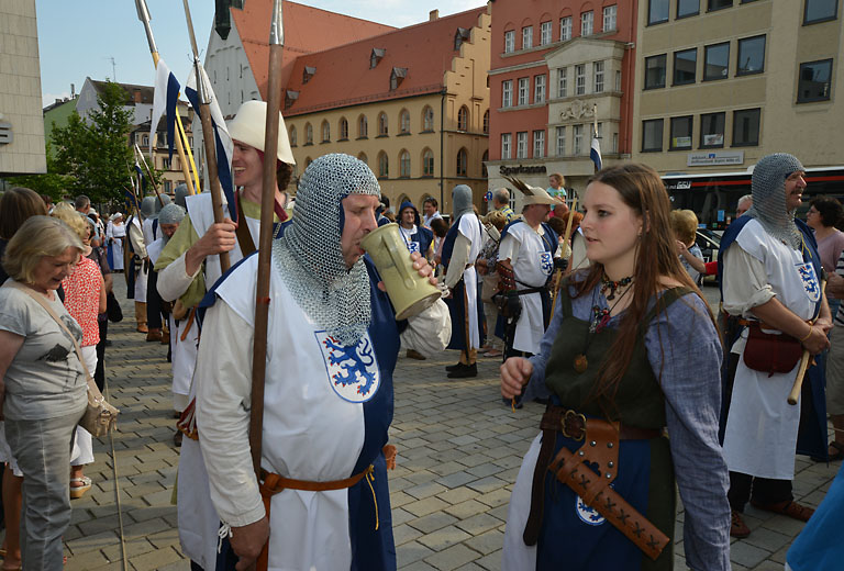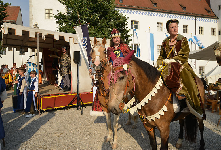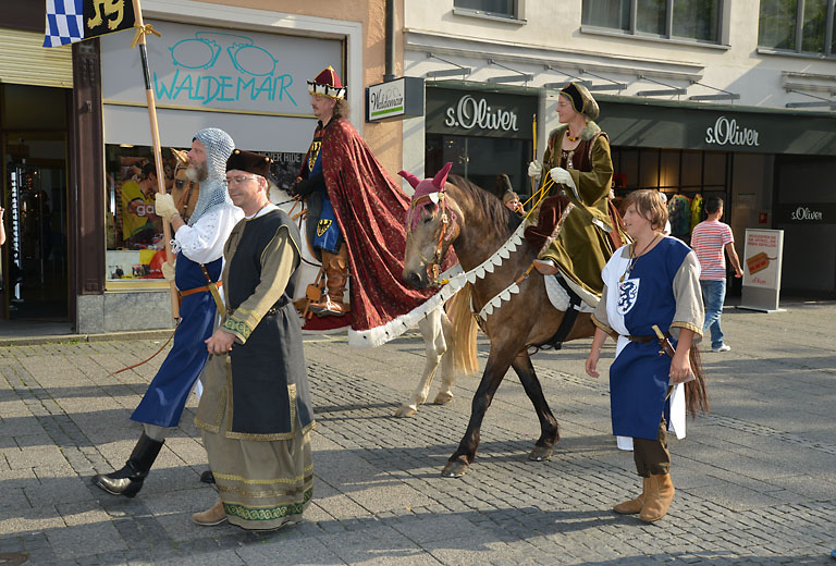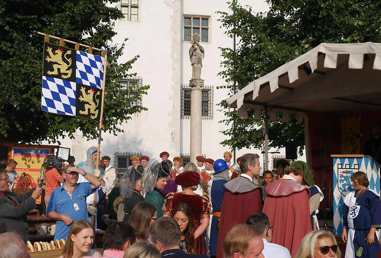 (ty) Drei Tage lang steht das Areal rund um das Neue Schloss in Ingolstadt wieder ganz im Zeichen des Herzogsfestes, das heute Nachmittag begann und bis Sonntag Abend dauert. Erster Höhepunkte war der große Festzug vom Rathaus zum Neuen Schloss. Bei den Temperaturen und den mittelalterlichen Gewändrn eine schweißtreibende Angelegenheit.