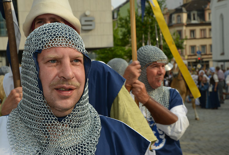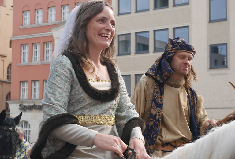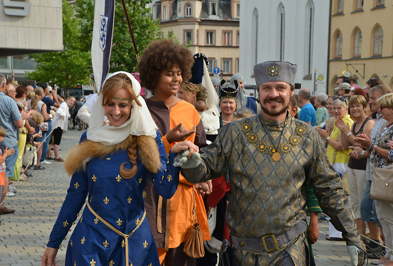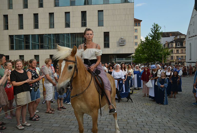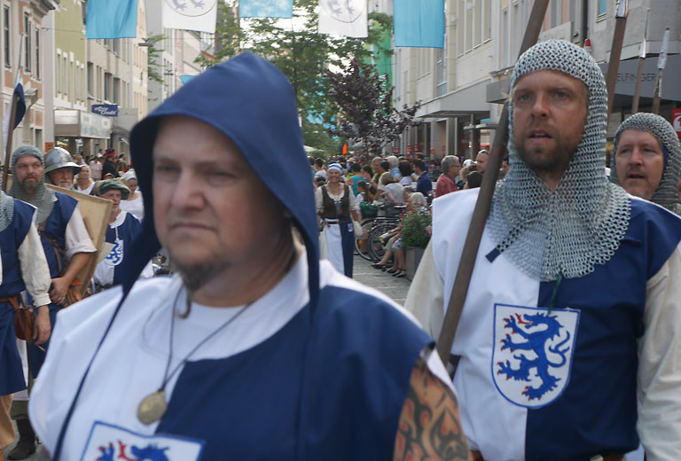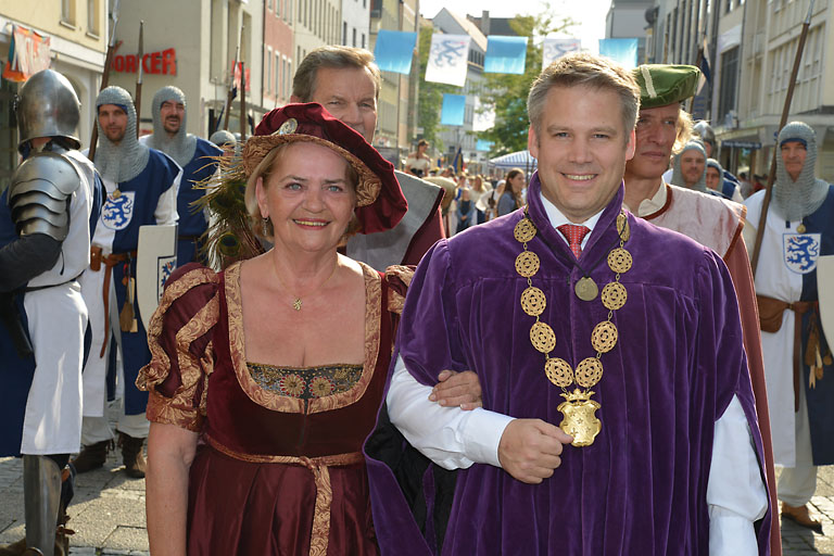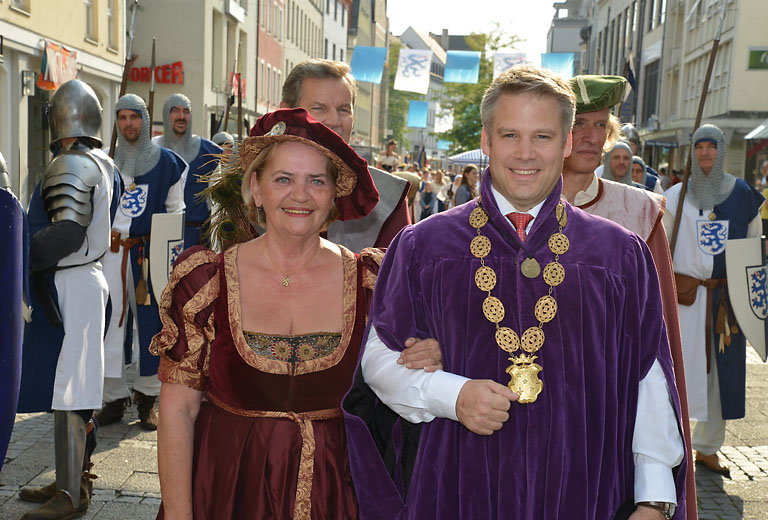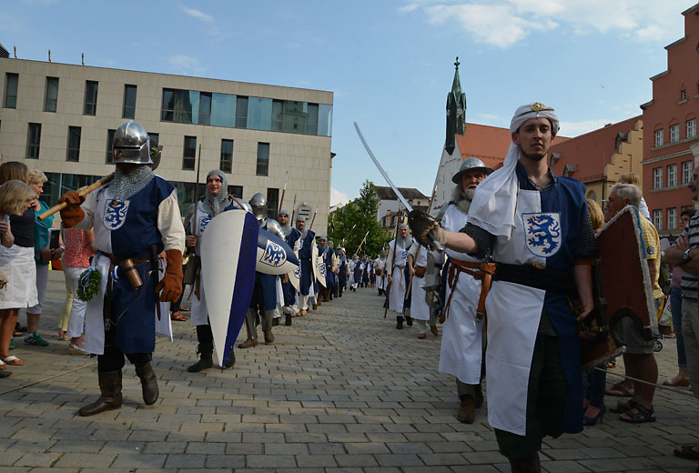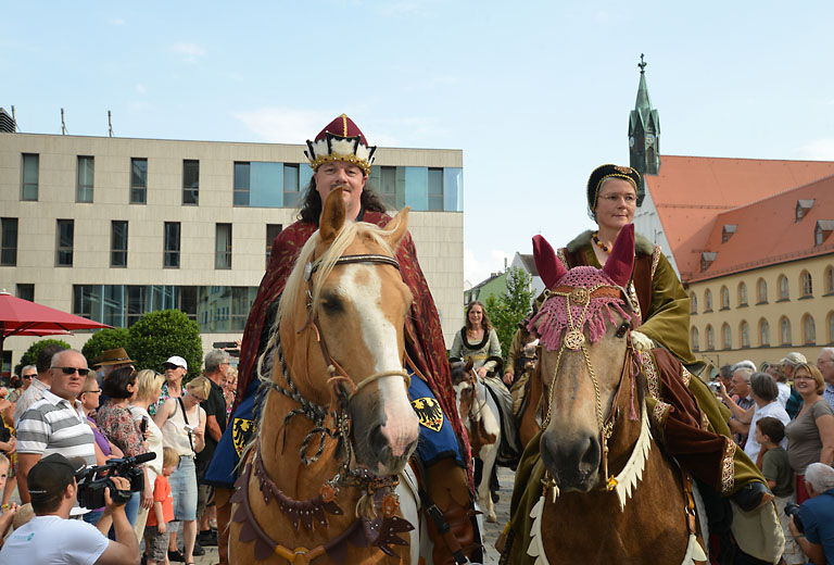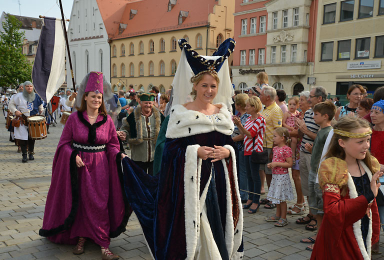 (ty) Drei Tage lang steht das Areal rund um das Neue Schloss in Ingolstadt wieder ganz im Zeichen des Herzogsfestes, das heute Nachmittag begann und bis Sonntag Abend dauert. Erster Höhepunkte war der große Festzug vom Rathaus zum Neuen Schloss. Bei den Temperaturen und den mittelalterlichen Gewändrn eine schweißtreibende Angelegenheit.