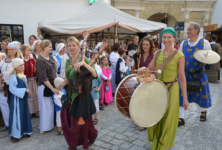 Die Schlossprogramme bilden den Kontrast zu den Spielleuten und dem fahrenden Volk ringsum an den Tavernen. Weit über 100 Programme von Märchenerzählern bis hin zu Tanz und Theater sind am Festwochenende geboten.