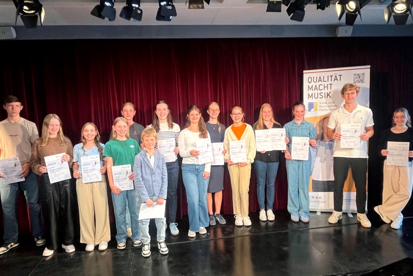 "Alle Lehrkräfte der städtischen Musikschule – ebenso wie die externen Prüfer – verfügen über ein abgeschlossenes Musikstudium auf Hochschul-Niveau und gewährleisten damit einheitlich hohe Qualitäts-Standards", betont die Stadtverwaltung. Nach dem Abschluss der Prüfungen bildete nun das öffentliche Konzert für die Absolventinnen und Absolventen einen krönenden Höhepunkt, bei dem die Programme noch einmal vor Publikum vorgetragen wurden. Reinhard Greiner, der Chef der städtischen Musikschule, und Stadtrats-Mitglied Max Penger überreichten schließlich die Urkunden und Abzeichen.