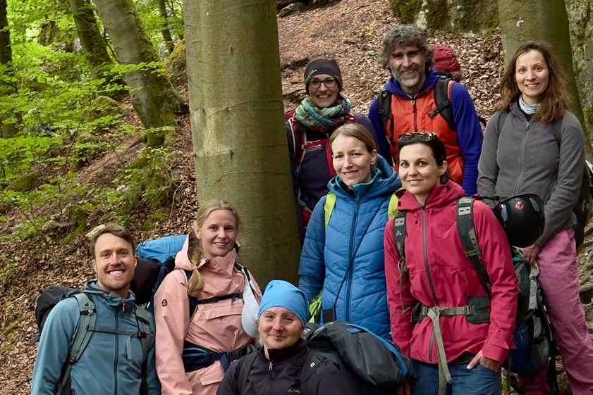 (ty) Unter der Leitung des erfahrenen Kletter-Trainers Joachim Kaiser hatte die Sektion Pfaffenhofen-Asch des deutschen Alpen-Vereins (DAV) kürzlich einen Kurs unter dem Motto "Von der Halle an den Fels" angeboten (Foto oben). Dieser fand im Birgland in der Frankenpfalz statt. Ziel dieses Lehrgangs sei es gewesen, die Teilnehmenden sicher und selbstständig an das Klettern im Freien heranzuführen. "Um sich der neuen Herausforderung anzunähern, begannen wir zunächst mit gesicherten Kletter-Einheiten im Toprope", berichtet Kaiser. "Die größte Umstellung beim Fels-Klettern besteht darin, dass es keine bunten Plastik-Griffe gibt, sondern die Route direkt im Fels gefunden werden muss."