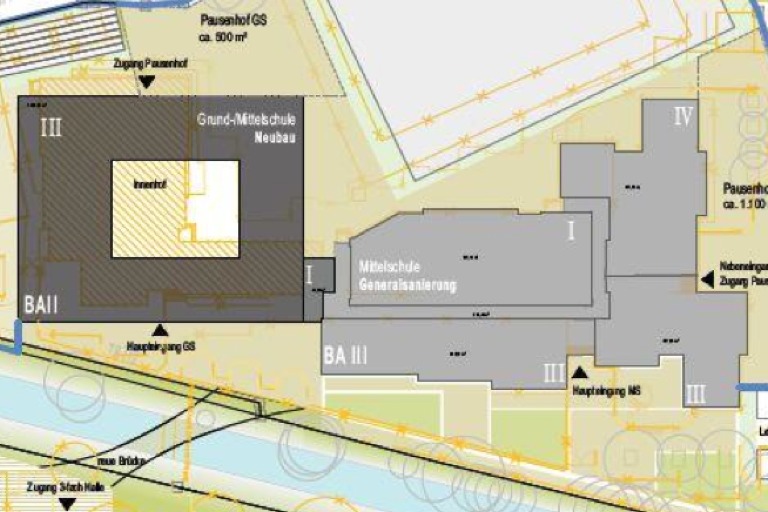 Variante 2: Neubau von Grund- und Mittelschule.