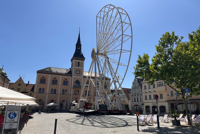 (ty) Auf dem Hauptplatz von Pfaffenhofen haben die Aufbau-Arbeiten für das imposante Riesenrad begonnen, das eine der Attraktionen bei den beiden bevorstehenden "Langen Nächte der Kunst und Musik" darstellt (Fotos). Im Rahmen des diesjährigen "Kultur-Sommers" steht an diesem Freitag, 27. Juni, und Samstag, 28. Juni, bekanntlich ein Highlight auf dem Programm: Die Innenstadt, so heißt es aus dem Rathaus, verwandele sich jeweils ab 17 Uhr wieder in ein Festival-Gelände.