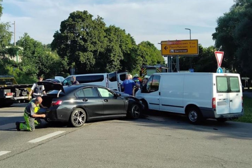 58 Jahre alter Ford-Transit-Lenker missachtete den Vorrang einer BWM-Fahrerin (58), die durch die Kollision verletzt wurde. Weiterer Wagen verwickelt.