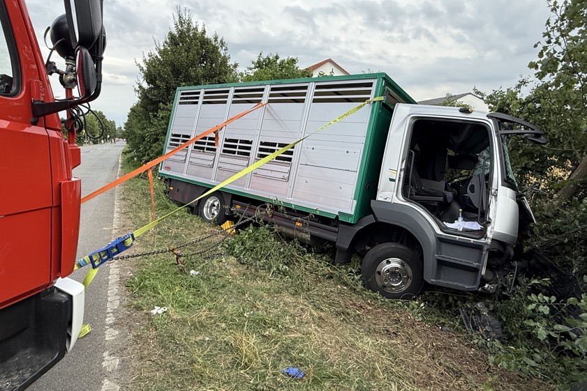 (ty) Ein heftiger und folgenreicher Lkw-Unfall hat sich am gestrigen Nachmittag in Ingolstadt-Zuchering ereignet. Das Unglück geschah gegen 14 Uhr: Ein 73-Jähriger kam mit dem von ihm gesteuerten Lastwagen von der Weicheringer Straße ab, geriet eine Böschung hinunter und prallte gegen einen stattlichen Baum. Der Lkw-Fahrer trug schwere Verletzungen davon und war eingeklemmt. Der Lkw drohte indes umzukippen. Zu retten galt es für die Einsatzkräfte laut Polizei auch einen ausgewachsenen Stier, der sich auf der Ladefläche des Lasters befunden hatte. Die Straße war stundenlang gesperrt.