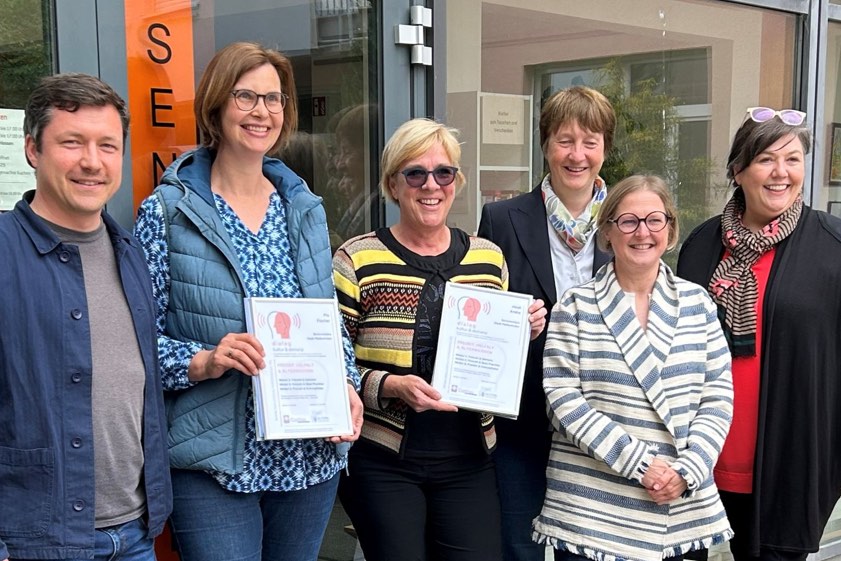 Nach der Urkunden-Übergabe verschafften sich die Besucherinnen bei einem Rundgang einen Überblick über das Angebot des Senioren-Büros und erhielten einen Einblick in die vielen Möglichkeiten, die im Bürger-Zentrum am Hofberg zur Verfügung stehen. "Dabei sprachen die Beteiligten über bestehende Formate, Wünsche aus der Bevölkerung und über Ideen für ein spezielles Angebot für Menschen mit Demenz und deren Angehörige – unter anderem eine barrierefreie Stadtführung mit biografischen Impulsen oder Mitarbeit in der hauseigenen Werkstatt", so die Stadtverwaltung.