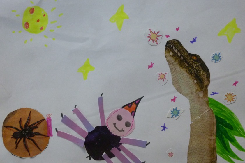 Collage von Charlotte (9) zur Geschichte "Die Spinne und der Drache".