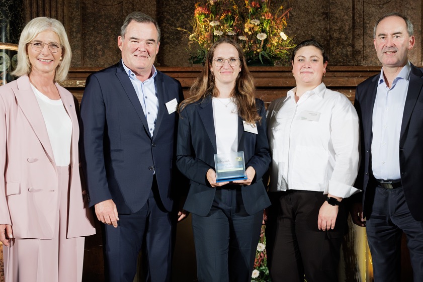 Arbeitsministerin Ulrike Scharf und Wirtschaftsminister Hubert Aiwanger zeichneten das Speditions-Unternehmen aus.