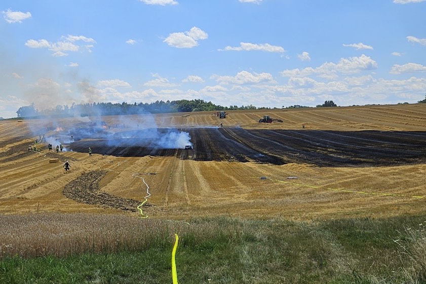 Zunächst war am gestrigen Nachmittag auf einem Feld bei Handzell ein Heuballen in Flammen geraten, dann das Stoppelfeld.