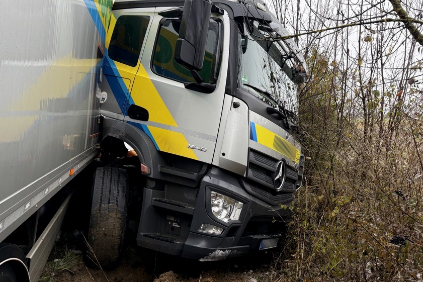 Staatsstraße 2050 war nach dem Unfall am heutigen Morgen wegen der Bergungs-Arbeiten gesperrt. Lkw-Fahrer (38) blieb unverletzt.