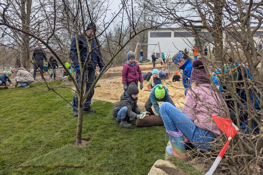Auf Initiative des Fördervereins rückten mehr als 100 Helfer an, um die Umgestaltung des Geländes voranzutreiben und den Garten weiterzuentwickeln.