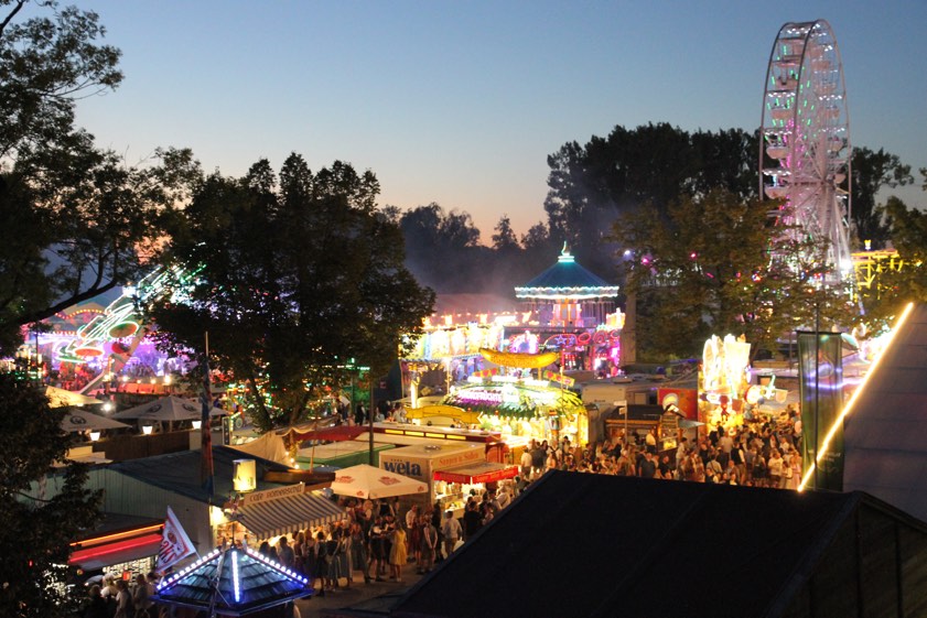 Gefeiert wird von 5. bis 16. September, die Mass Bier kostet bis zu 12,20 Euro. Riesenrad, Feuerwerk, buntes Programm, Dart-Event mit Profis, Steinheben, "Diandl-Voixfest" für Frauen. Busse und Bimmelbahn im Einsatz.