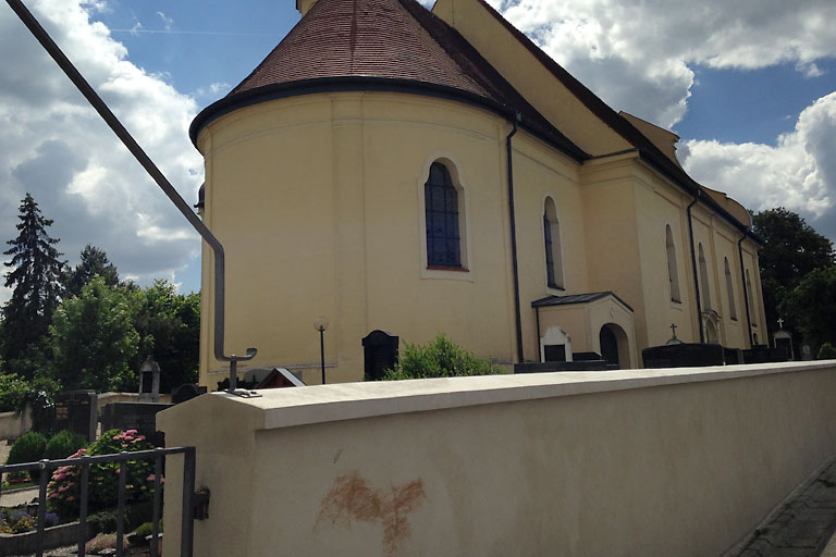 Unbekannte haben die Außenmauer des Schweitenkirchener Gotteshauses auf einer Länge von 15 Metern mit Farbe beschmutzt