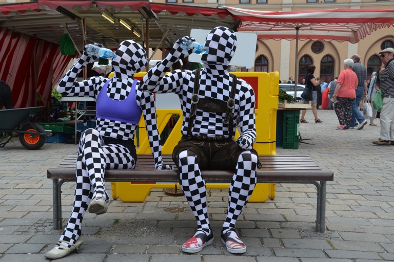 Das ungewöhnliche Künstler-Duo Sara und Fabian aus Augsburg hat heute auf dem Pfaffenhofener Hauptplatz für Unterhaltung gesorgt – Mit Bildergalerie