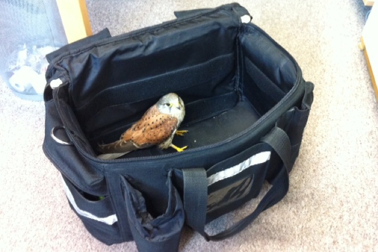 Polizisten haben heute früh am Straßenrand einen verletzten Turmfalken entdeckt – und ihn kurzerhand eingefangen, in eine Tasche gesetzt und in eine Münchner Spezialklinik für Greifvögel gebracht