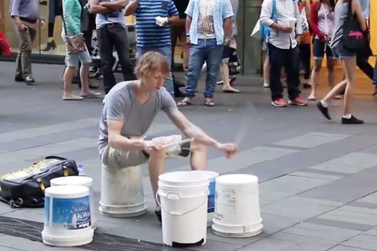 Ein Video, das man gesehen haben muss: Was ein junger Drummer mit ein paar leeren Kübeln anstellt