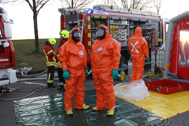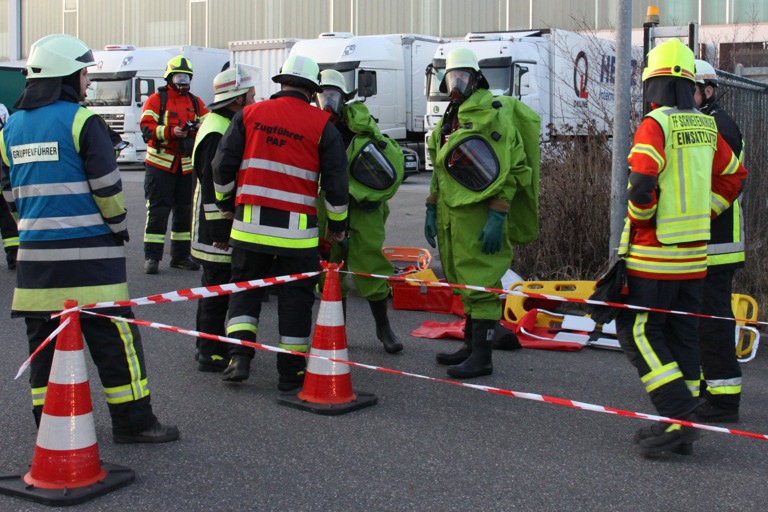 Folgenschwerer Fehler eines Stapler-Fahrers: 700 Liter hochkonzentrierter Schwefelsäure laufen im Gewerbegebiet Schweitenkirchen direkt in die Kanalisation