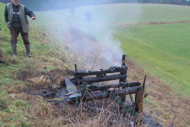 Brandstiftung bei Hettenshausen: Feuer greift glücklierweise nicht auf die angrenzenden Wiesenflächen über – Polizei hofft auf Hinweise durch Spaziergänger
