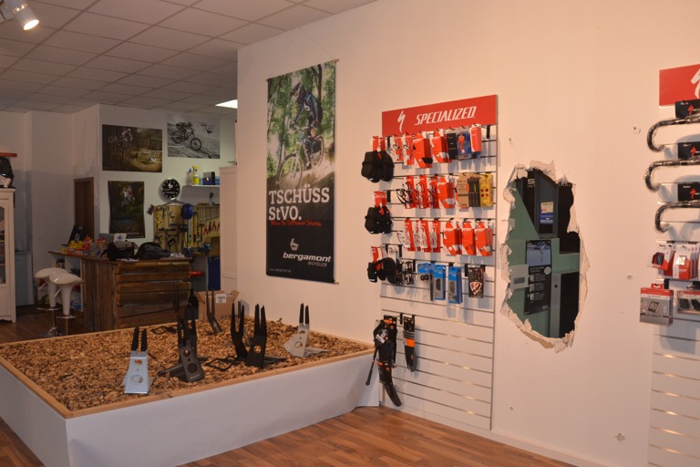 In Pfaffenhofen schlugen heute Nacht erneut professionelle Einbrecher zu. Sie kamen über die Nachbarfirma ins Gebäude und rissen ein Loch in die Wand, um in das Radgeschäft zu gelangen und die Beute nach draußen zu schaffen