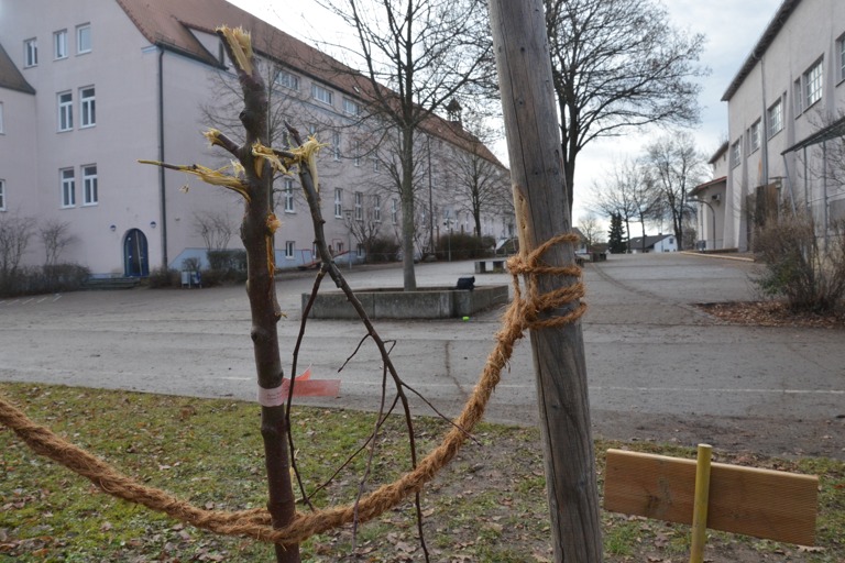 Erst im Oktober war vor der Grundschule Scheyern ein Apfelbaum gepflanzt worden, nun haben ihn unbekannte Vandalen zerstört