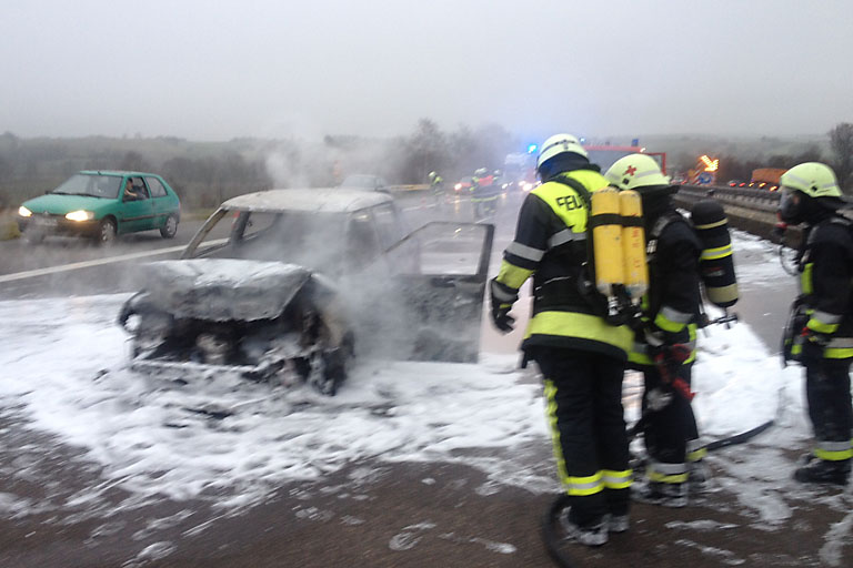 Trotz des Einsatzes mehrerer Feuerwehren brannte das Fahrzeug komplett aus
