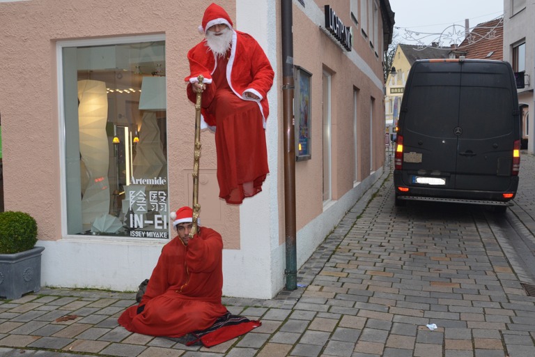 Ein schwebender Nikolaus sorgte heute am Pfaffenhofener Hauptplatz für offene Münder und ratlose Gesichter